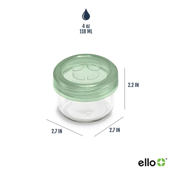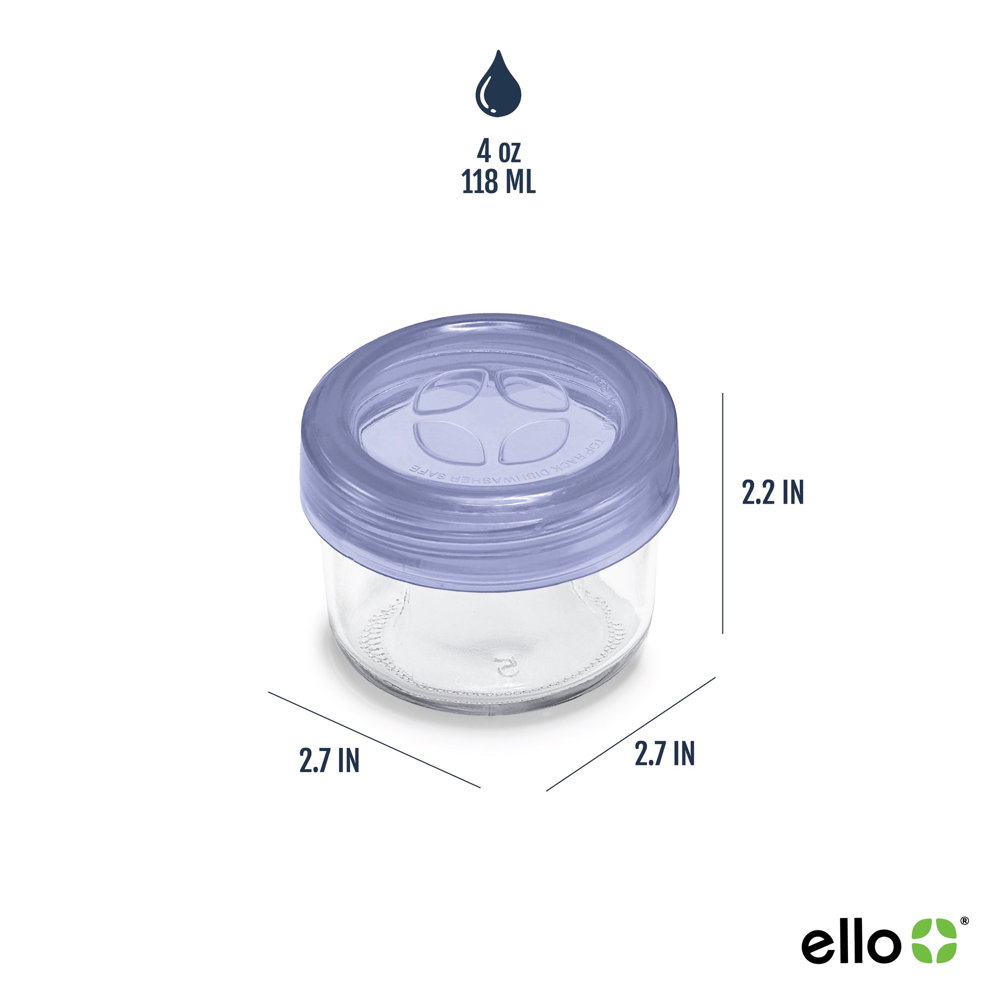 Ello Duraglass™ Color Lock® condiment container set includes (3) 4oz glass condiment containers with BPA-free plastic locking lids to keep food fresh for longer.