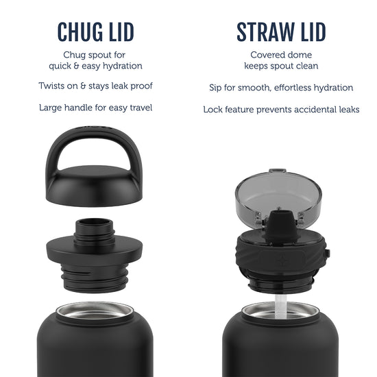 Cooper just got better! Choose between two lid options: a soft silicone spout with a locking, leak-proof flip lid to keep the drink surface fully covered during transport, or a wide mouth twist cap perfect for work, workouts, or staying hydrated at home.