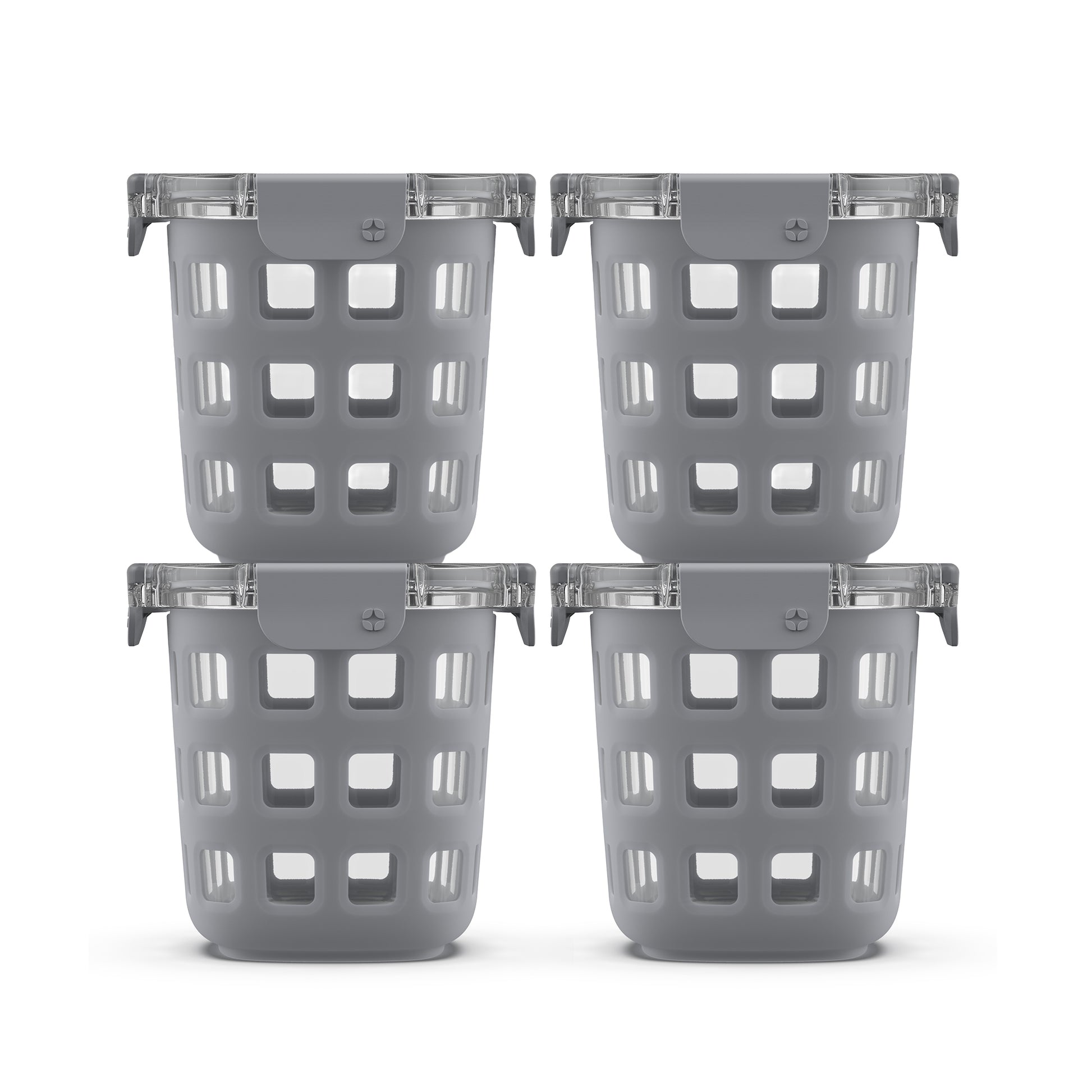 This bundle consists of 4 Ello Duraglass™ 3 Cup Round glass food storage containers. These are perfect for Mason jar meals, layered salads and overnight oats. Ello Duraglass™ features a leak-proof lid and an extra thick silicone sleeve that protects the glass from chips and breaks. A crystal clear lid lets you see contents inside and includes air tight snaps that won't leak.