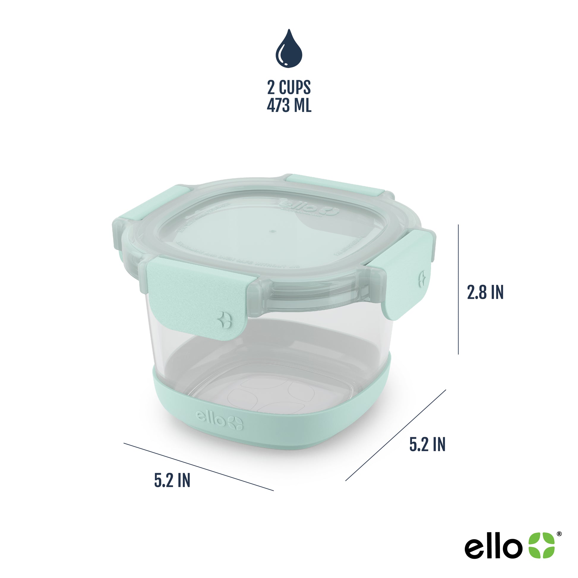 The Ello Duraglass™ 2 Cup round glass food storage containers are perfect for Mason jar meals, layered salads and overnight oats. Ello Duraglass™ features a leak-proof lid and an extra thick silicone sleeve that protects the glass from chips and breaks. A crystal clear lid lets you see contents inside and includes air tight snaps that won't leak.