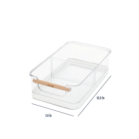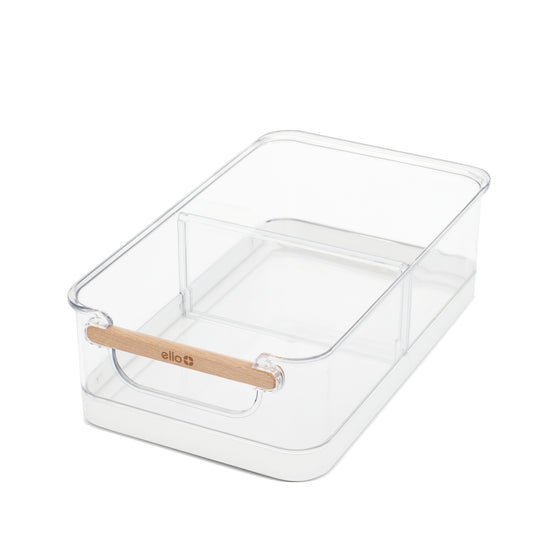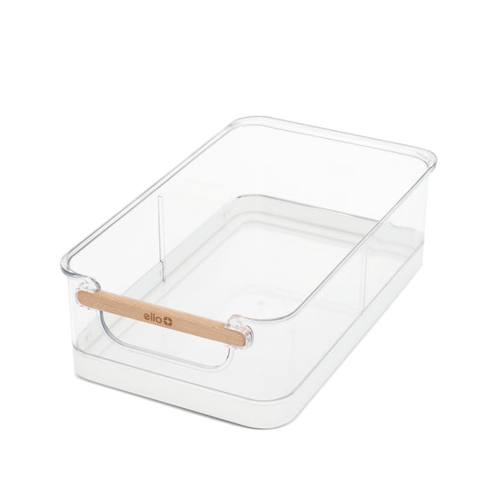 The Ello Fridge Bin streamlines the chaos of everyday fridge essentials. Whether you're storing yogurt, fruit, juice boxes, or cheese, everything is easy to see and grab—so nothing gets lost or forgotten. The crystal-clear body keeps contents visible at a glance, while natural wood handles make it easy to pull and restock.