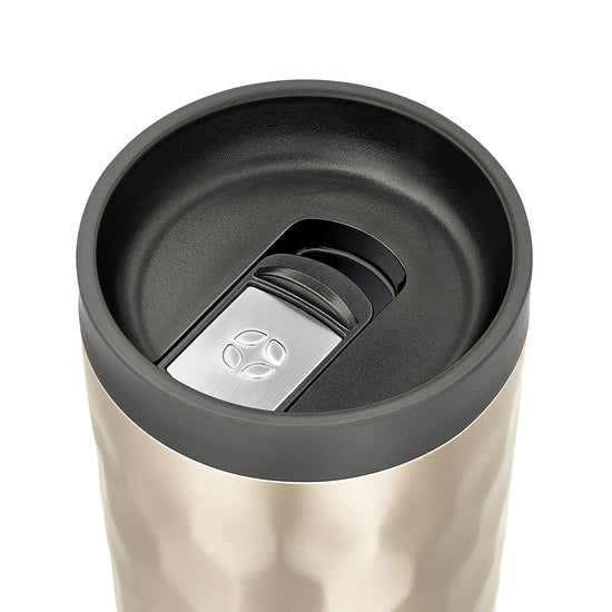 Patented Slider Lid is 100% leak-proof is designed for easy open/close and on-the-go use. Slide-open for effortless sipping, slide-closed while traveling.