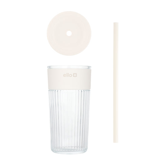 The Ello Ava 18oz glass tumbler with straw is the perfect companion for sipping smoothies, iced coffee, tea, and meeting your hydration needs. Experience a secure and comfortable no-slip grip with the silicone band that also reduces condensation and keeps your hands dry. Whether you're commuting or going on a road trip, the car cup friendly design ensures a hassle-free fit in most cup holders, adding convenience to your daily routine.