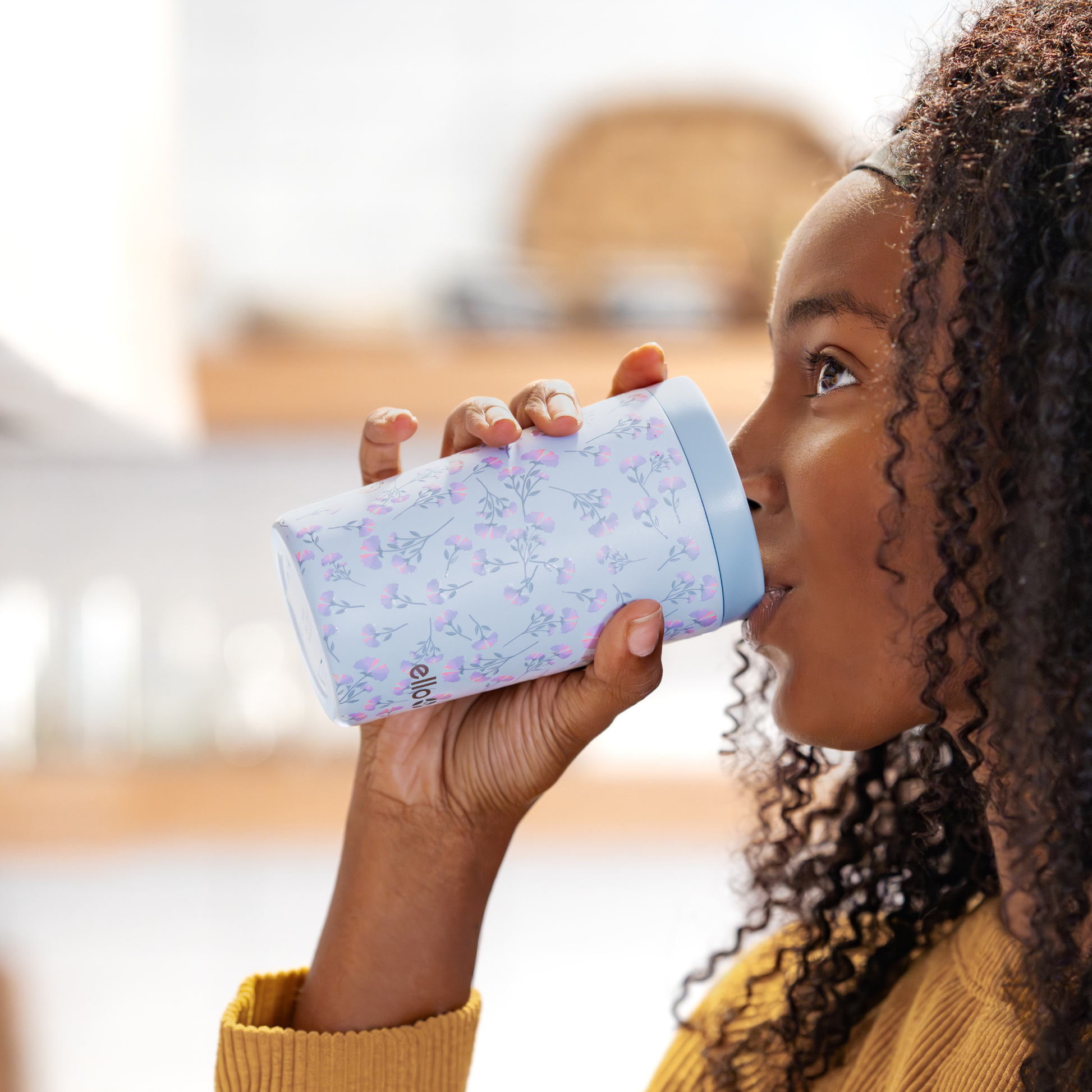 When you're on-the-go, sometimes bigger isn't better. The Ello Jones 11oz Stainless Steel Travel Mug is the perfect size to fit under single serve machines. This micro coffee cup doesn't take up a lot of room in your bag. Its leak-proof sealing slider lid is designed for easy open/close and on-the-go use. Vacuum insulation keeps beverages hot for 3 hours and cold for 8 hours.