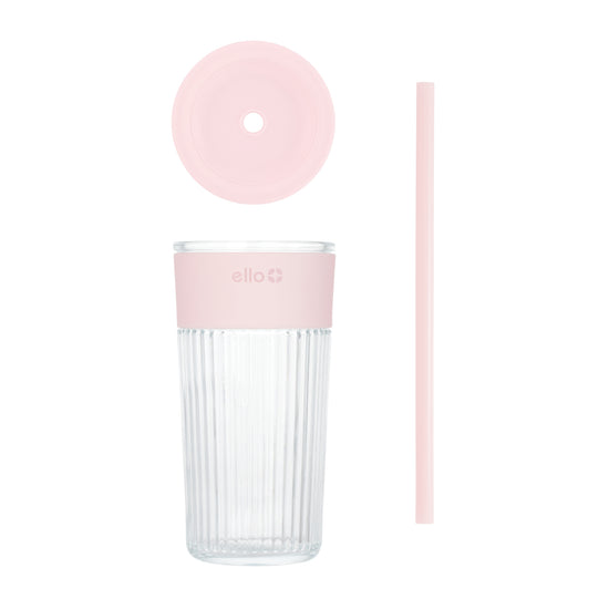 The Ello Ava 18oz glass tumbler with straw is the perfect companion for sipping smoothies, iced coffee, tea, and meeting your hydration needs. Experience a secure and comfortable no-slip grip with the silicone band that also reduces condensation and keeps your hands dry. Whether you're commuting or going on a road trip, the car cup friendly design ensures a hassle-free fit in most cup holders, adding convenience to your daily routine.